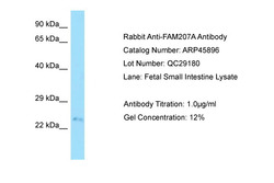 - WB Suggested Anti-FAM207A Antibody Titration: 1.0 ug/ml, Positive Control: Fetal Small Intestine