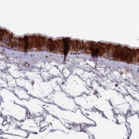 - Immunohistochemical staining of human nasopharynx with IGLON5 polyclonal antibody (Cat # PAB23886) shows strong cytoplasmic positivity in respiratory epithelial cells at 1:50-1:200 dilution.