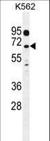 - LRRC63 Antibody western blot of K562 cell line lysates (35 ug/lane). The LRRC63 antibody detected the LRRC63 protein (arrow).