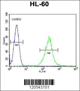 - ECAT1 Antibody (N-term) (Cat. #AP11238a) flow cytometric analysis of HL-60 cells (right histogram) compared to a negative control cell (left histogram).FITC-conjugated goat-anti-rabbit secondary antibodies were used for the analysis.