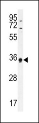 - ECAT1 Antibody western blot of HL-60 cell line lysates (35 ug/lane). The ECAT1 antibody detected the ECAT1 protein (arrow).
