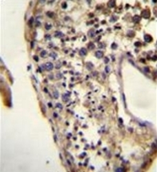 - Formalin fixed and paraffin embedded human testis tissue reacted with ECAT1 Antibody (N-term) ??followed by peroxidase conjugation of the secondary antibody and DAB staining.