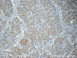 - Immunohistochemistry of paraffin-embedded human liver cancer tissue slide using 24989-1-AP ( KHDC3L antibody at dilution of 1:50 (under 10x lens).