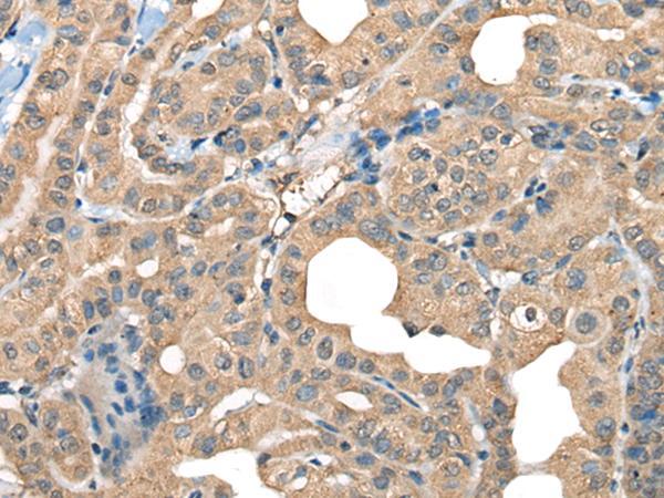 - Immunohistochemistry of paraffin-embedded Human thyroid cancer tissue using CABP5 Polyclonal Antibody at dilution of 1:65(×200)