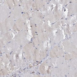 - Immunohistochemical staining of AN13A in human skeletal muscle using AN13A Polyclonal Antibody (Product # PA5-58812) shows low expression as expected.