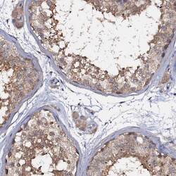 - Immunohistochemical staining of AN13A in human testis using AN13A Polyclonal Antibody (Product # PA5-58812) shows high expression.
