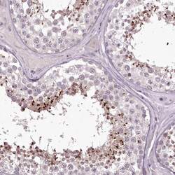 - Immunohistochemical staining of MENT in human testis using MENT Polyclonal Antibody (Product # PA5-57948) shows high expression.