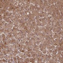 - Immunohistochemistry-Paraffin: C2orf91 Antibody [NBP1-91120] - Staining of human liver shows moderate cytoplasmic and nuclear positivity in hepatocytes.