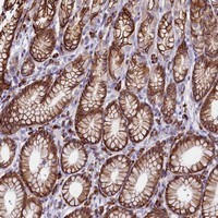- Immunohistochemical staining of human stomach with C5orf15 polyclonal antibody (Cat # PAB23518) shows strong cytoplasmic and membranous positivity in glandular cells at 1:50-1:200 dilution.