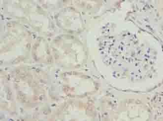- Immunohistochemistry of paraffin-embedded human kidney tissue using antibody at dilution of 1:100.