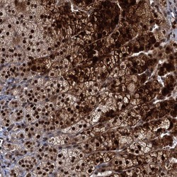 - Immunohistochemical analysis of MBD6 in human adrenal gland using MBD6 Polyclonal Antibody (Product # PA5-58605) shows strong nuclear and cytoplasmic positivity in glandular cells.