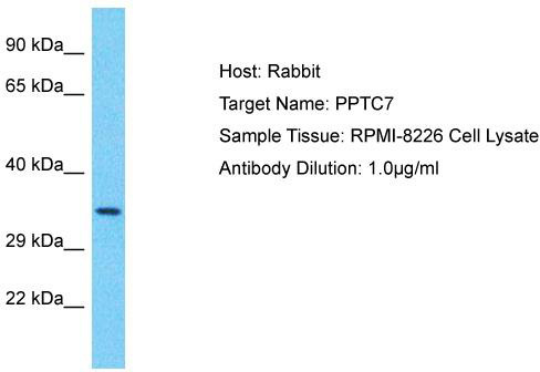 - Host: Rabbit; Target Name: PPTC7; Sample Tissue: RPMI-8226 Whole Cell lysates; Antibody Dilution: 1.0ug/ml