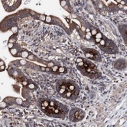 - Immunohistochemical staining of human colon with PPTC7 polyclonal antibody (Cat # PAB23534) shows strong cytoplasmic positivity in glandular cells at 1:200-1:500 dilution.