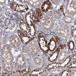 - Immunohistochemical staining of human kidney with PPTC7 polyclonal antibody (Cat # PAB23673) shows strong cytoplasmic positivity in cells in tubules at 1:20-1:50 dilution.
