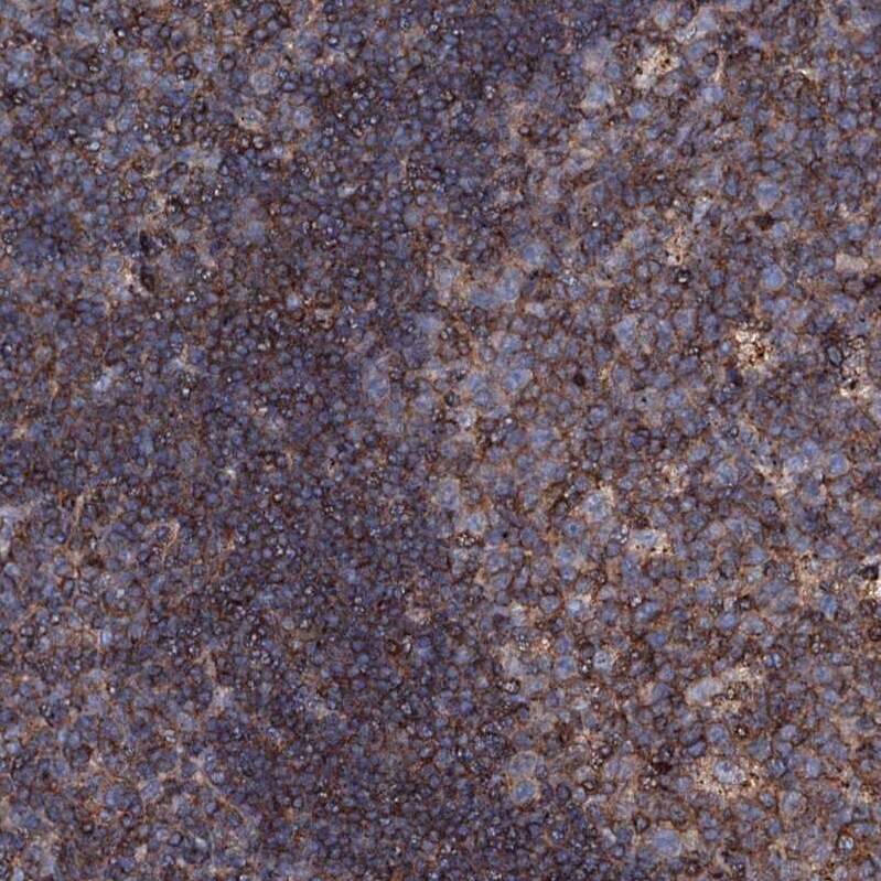 - Immunohistochemical analysis of MS4A4E in human tonsil using MS4A4E Polyclonal Antibody (Product # PA5-59057) shows strong cytoplasmic positivity in non-germinal center cells and germinal center cells.