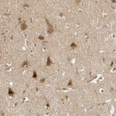 - Immunohistochemistry-Paraffin: PDDC1 Antibody [NBP1-93843] - Staining of human cerebral cortex shows distinct cytoplasmic positivity in neurons.