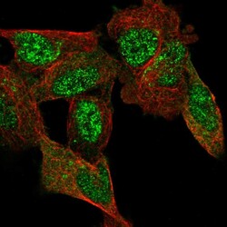 - Immunofluorescent staining of human cell line SH-SY5Y shows localization to nucleoplasm & cytosol.
