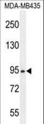 - ZBBX Antibody western blot of MDA-MB435 cell line lysates (35 ug/lane). The ZBBX antibody detected the ZBBX protein (arrow).