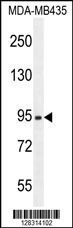 - ZBBX Antibody (N-term) western blot analysis in MDA-MB435 cell lysates (35ug/lane).This demonstrates the ZBBX antibody detected the ZBBX protein (arrow).