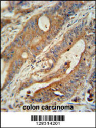 - ZBBX antibody (N-term) immunohistochemistry analysis in formalin fixed and paraffin embedded human colon carcinoma followed by peroxidase conjugation of the secondary antibody and DAB staining. This data demonstrates the use of the ZBBX antibody (N-term) for immunohistochemistry. Clinical relevance has not been evaluated.
