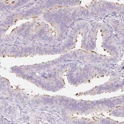 - Immunohistochemical staining of ZBBX in human fallopian tube using ZBBX Polyclonal Antibody (Product # PA5-57612) shows high expression.
