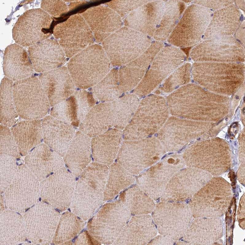 - Immunohistochemical analysis of TMCO7 in human skeletal muscle using TMCO7 Polyclonal Antibody (Product # PA5-59510) shows strong cytoplasmic positivity in myocytes.