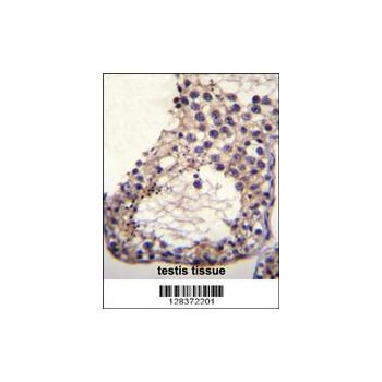 - OTOA Antibody (N-term) (Cat. #OAAB07393)immunohistochemistry analysis in formalin fixed and paraffin embedded human testis tissue followed by peroxidase conjugation of the secondary antibody and DAB staining.This data demonstrates the use of OTOA Antibody (N-term) for immunohistochemistry. Clinical relevance has not been evaluated.
