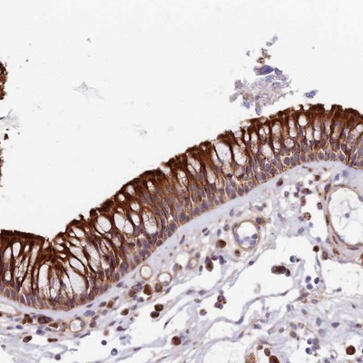 - Immunohistochemistry-Paraffin: VPS13C Antibody [NBP1-94044] - Staining of human nasopharynx shows strong cytoplasmic and membranous ( cilia ) positivity in respiratory epithelial cells.