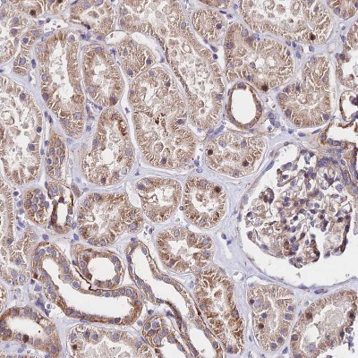- Immunohistochemistry-Paraffin: VPS13C Antibody [NBP1-94044] - Staining of human kidney shows moderate positivity in cells in tubules and glomeruli.
