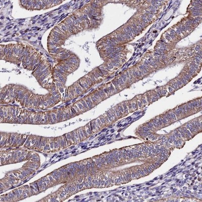 - Immunohistochemistry-Paraffin: VPS13C Antibody [NBP1-94044] - Staining of human endometrium shows moderate granular positivity in cytoplasm in glandular cells.