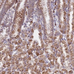 - Immunohistochemistry-Paraffin: VPS13C Antibody [NBP1-94044] - Staining of human stomach shows moderate granular positivity in cytoplasm in glandular cells.