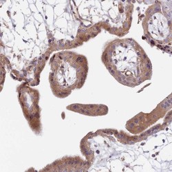 - Immunohistochemistry-Paraffin: VPS13C Antibody [NBP1-94044] - Staining of human placenta shows moderate cytoplasmic positivity in trophoblastic cells.