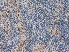 - Immunohistochemical staining of paraffin-embedded Human lymphoma tissue using anti-CXorf26 mouse monoclonal antibody. (Heat-induced epitope retrieval by 10mM citric buffer, pH6.0, 100C for 10min, TA503296)