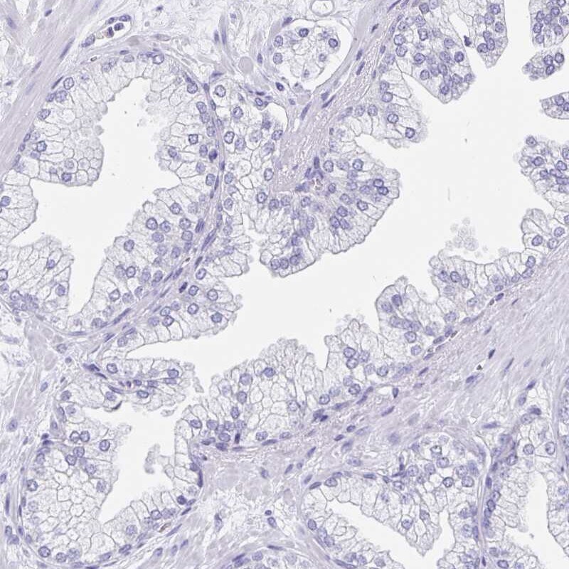 - Immunohistochemical staining of SNTN in human prostate using SNTN Polyclonal Antibody (Product # PA5-63565) shows low expression as expected.