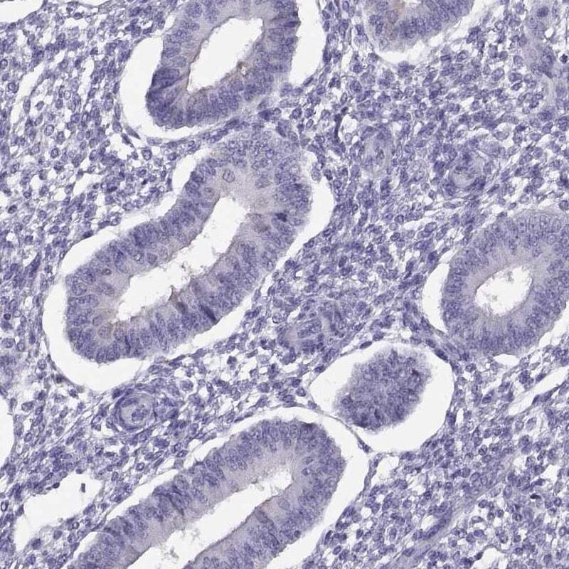 - Immunohistochemical staining of TTC21A in human endometrium using TTC21A Polyclonal Antibody (Product # PA5-57301) shows low expression as expected.