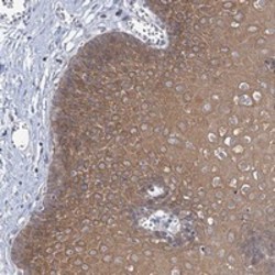 - Immunohistochemical staining of human esophagus with LOC153364 polyclonal antibody (Cat # PAB23158) shows moderate cytoplasmic positivity in squamous epithelial cells at 1:20-1:50 dilution.