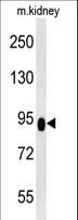 - ZBTB41 Antibody western blot of mouse kidney tissue lysates (35 ug/lane). The ZBTB41 antibody detected the ZBTB41 protein (arrow).