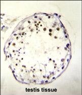 - Immunohistochemistry analysis of DNAAF3 in formalin fixed and paraffin embedded human testis tissue. Samples were incubated with DNAAF3 polyclonal antibody (Product # PA5-71524) followed by peroxidase conjugation of the secondary antibody and DAB staining. This data demonstrates the use of this antibody for immunohistochemistry. Clinical relevance has not been evaluated.