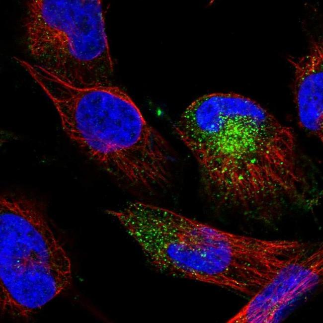 - Immunofluorescent staining of MAP6D1 in human cell line U-251 MG shows positivity in cytoplasm. Samples were probed using a MAP6D1 Polyclonal Antibody (Product # PA5-58199).