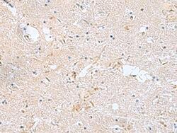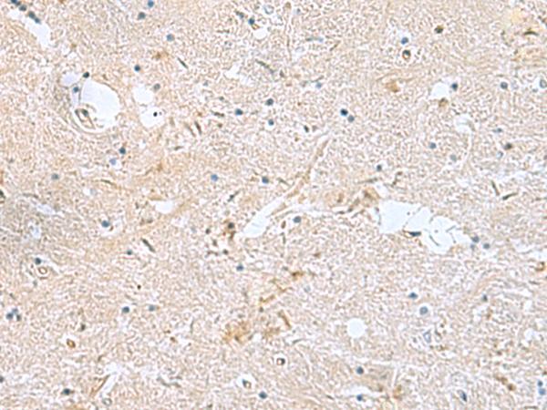 - Immunohistochemistry of paraffin-embedded Human brain tissue using FAM107B Polyclonal Antibody at dilution of 1:160(×200)