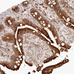 - Immunohistochemical staining of human colon with C1orf127 polyclonal antibody ( Cat # PAB27993 ) shows strong cytoplasmic positivity in glandular cells at 1:20 - 1:50 dilution.