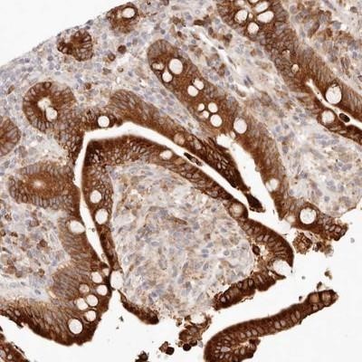 - Immunohistochemistry-Paraffin: C1orf127 Antibody [NBP1-93807] - Staining of human colon shows strong cytoplasmic positivity in glandular cells.