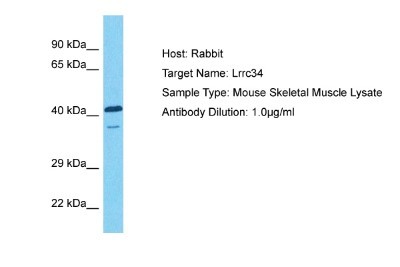 - Western Blot: LRRC34 Antibody [NBP2-83153] - Host: Rabbit. Target Name: LRRC34. Sample Tissue: Mouse Skeletal Muscle lysates. Antibody Dilution: 1ug/ml