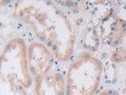 - Immunohistochemistry analysis of VWA3A in paraffin-embedded Human Kidney tissue. Samples were incubated with polyclonal antibody (Product # PA5-119506) at a dilution of 30 µg/mL, followed by HRP-Linked Caprine Anti-Rabbit IgG using a dilution of 2 µg/mL.