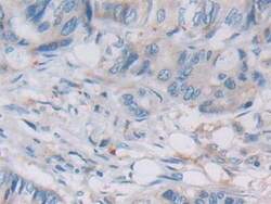 - Immunohistochemistry analysis of VWA3A in paraffin-embedded Human Colorectal cancer tissue. Samples were incubated with polyclonal antibody (Product # PA5-119506) at a dilution of 30 µg/mL.