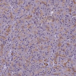 - Immunohistochemistry-Paraffin: VWA3A Antibody [NBP1-93776] - Staining of human pancreas shows moderate cytoplasmic positivity in exocrine glandular cells.