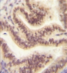 - Formalin fixed, paraffin embedded human uterus tissue stained with C16orf45?Antibody (Center) ??followed by peroxidase conjugation of the secondary antibody and DAB staining. This data demonstrates the use of the CP045 antibody (Center) for immunohistochemistry. Clinical relevance has not been evaluated.