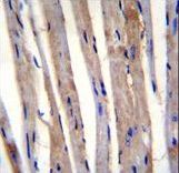 - KRT73 Antibody immunohistochemistry of formalin-fixed and paraffin-embedded m.heart tissue followed by peroxidase-conjugated secondary antibody and DAB staining.