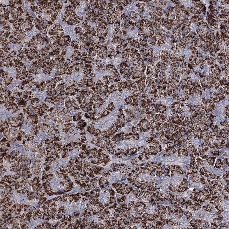 - Immunohistochemical analysis of C5orf42 in human pancreas using C5orf42 Polyclonal Antibody (Product # PA5-57810) shows strong granular cytoplasmic positivity in exocrine glandular cells.