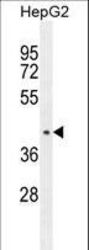- CCDC17 Antibody western blot of HepG2 cell line lysates (35 ug/lane). The CCDC17 antibody detected the CCDC17 protein (arrow).
